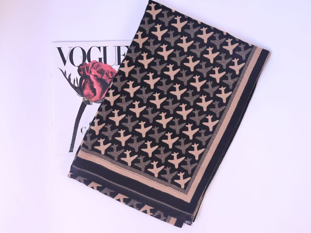 Soft and cozy scarves with an airplane design. available in 7 different color combinations.